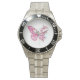 Flower arrangement of pink butterfly with rose Japanese cherry blossoms on white background.