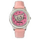 Des filles d'art de chat violet graphique regardent. Personnalisez cette montre avec votre nom actuellement dit Dajana. Face de chatte mignonne par Sarah Trett.