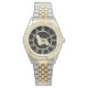 Une silhouette or brillante American Cocker Spaniel Dog est la caractéristique au centre de cette montre élégante. L'image du chien est encadrée par des chiffres romains or assortis, et placée sur un arrière - plan noir dramatique. Parfait pour tous ceux qui aiment un Cocker, et surtout quelqu'un dans le monde Dog Show.