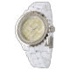 Beautiful Womens White Rhinestone Face Watch, Feuring our Golden Music Notes Design - Gold Arrière - plan Image sous licence et copyright de Graphics Factory