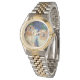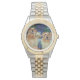 Cette montre présente des récupérateurs d'or habillés comme des fées tenant des baguettes dans la bouche.