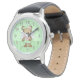 Cette montre personnalisée au poignet présente un ours en peluche avec des ailes faery sur un arrière - plan vert.