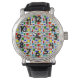 Cette montre pour hommes a une conception Bauhaus d'une grille avec carrés et rectangles en rouge, vert, bleu, orange, bleu clair, jaune et rouge.