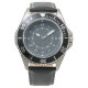 Une couleur foncée et solide "Charcoal Grey" Montre Hommes avec des chiffres romains blancs. Charcoal Grey est un bleu gris très foncé. Cliquez sur "Personnaliser" pour changer de couleur ou pour ajouter un motif ou un design. Code hexadécimal du produit : #36454f