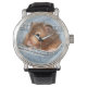 Sable brun long pointes de hamster dans la poche d'une paire de jeans bleu montre au poignet