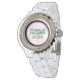 Notre montre d'accent en strass rose et vert KAMALA HARRIS 2024 est une façon élégante de montrer votre soutien à la campagne historique de KAMALA HARRIS 2024. Le design est d'inspiration rétro et présente du texte rose et vert joint à un arrière - plan blanc aux accents rose et noir. Disponible dans une variété de styles et de couleurs de montre, pour les femmes, les enfants et les hommes. HARRIS 2024. Allons-y ! Remises sur volume disponibles.
