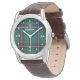 Élégante montre à bracelet en cuir, avec le classique clan turquoise Henderson motif en plaid, sur le visage, avec des nombres blancs et des points pour les heures. Le texte blanc personnalisé lit Henderson, et peut être personnalisé pour lire ce que vous voulez.
