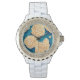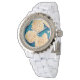 Montre Hydrangea aquarelle motif, jaune et bleu