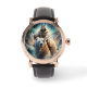 Montre vintage en or rose avec bracelet marron