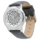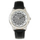 Cette conception de 3 carrés, pivotés, réduits et dupliqués crée une illusion optique de rayons ou de rayures de lumière provenant du centre de la montre. Les points extérieurs (coins) indiquent les heures.