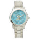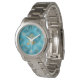 Ajoutez votre propre logo d'entreprise à cette montre. Un arrière - plan à l'allure métallique bleu océan. Parfait pour promouvoir votre entreprise et votre marque. Faux or horloge chiffres visage.