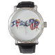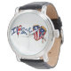 Ce Hommes Magnifique bracelet en cuir noir Vintage Montre Avec les mots, I LOVE SALSA, et certains instruments utilisés pour faire des fêtes, CONGA'S et MARACAS.