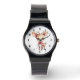 Une montre avec l'illustration d'un adorable cerf de bébé. Grands yeux grands oreilles avec une grande tête et des petits bois bruns. Portant un gros arc rouge.