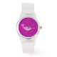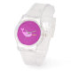 Cette superbe montre présente une image art numérique d'une jolie petite fille rose magique Narwhal. Le corps principal du Narwhal a une texture rugueuse et est rose vif tandis que le ventre est rose pâle. Le Narwhal a un oeil noir avec une pupille rose pâle et une corne dorée brillante sur le visage. Il a aussi une queue délicate et des palmes.