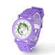 Montre pour enfant avec un dessin animé, ole St. Nick, ou mieux connu sous le nom de Père Noël, sur un arrière - plan vert. Conçu par Simply Put by Robin.