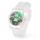 Dragon vert (découpe en papier et style origami) aux pivoines roses. Design sur Silicone Strap montre claire avec des chiffres romains semi-transparents. Parfait pour le Nouvel An chinois et vietnamien du Dragon 2024 ou anniversaire (personnes nées dans l'Année du Dragon). — "Le Dragon (chinois simplifié : 龙; chinois traditionnel : 龍) est l'un des 12 ans de cycle des animaux qui apparaissent dans le zodiaque chinois lié au calendrier chinois. L'année du dragon est associée au 辰 du symbole de la branche terrestre, prononcé chen. Un chercheur universitaire a proposé que le caractère de la branche terrestre ait été associé à des scorpions; il aurait pu symboliser l'étoile Antarès." On peut dire que les personnes nées dans ces plages de dates sont nées dans l'"Année du Dragon", tout en portant le signe élémentaire suivant : 22 janvier 1928 - 9 février 1929 = Earth Dragon, 8 février 1940 - 26 janvier 1941 = Metal Dragon, 27 janvier 1952 - 13 Février 1953 = Dragon d'Eau, 13 février 1964 - 1er février 1965 = Dragon de Bois, 31 janvier 1976 - 17 février 1977 = Dragon de Feu, 17 février 1988 - 5 février 1989 = Dragon de Terre, 5 février 20 20 - 23 janvier 2001 = Dragon de Métal, 23 janvier 2012 - 9 février 2013 = Dragon d'Eau, 10 février 2024 - 28 janvier 2025 = Dragon de Bois, 28 janvier 2036 - 14 février 2037 = Feu agon " Wikipedia