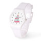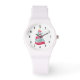 Une montre avec une illustration amusante et fantaisiste. Design typographique en forme d'arbre de Noël avec quelques ornements de noël et une étoile au-dessus. A l'intérieur sont les mots : Joie au monde.