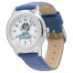 Kids classic leather strap watch shown in blue with a cute little princess print.