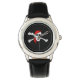 Montre classique pour enfants en cuir bracelet en noir avec une jolie empreinte crâne pirate. Choisissez cette montre dans plusieurs styles. Customisez cette montre ou achetez tel quel. Image stock all-free-download.com freepik.com