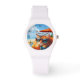 Montre avec un tableau coloré d'un chaton qui snobe sur la plage.