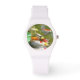 Cette montre présente une image de koi-poisson coloré dans un étang.