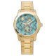 Habillez votre tenue avec cette montre d'or unique "One of a Kind" Sud-Ouest Kokopelli! Il présente une Kokopelli sud-ouest en or et noir Jouant la Flûte et dansant sous le soleil sur un Arrière - plan en pierre Turquoise, Noire et Or! Design D'Art Original Par L'Artiste Kerry Miller.