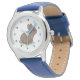 Quel mignon lapin peint de façon réaliste avec un nez rose assis dans un bout de trèfle ! Éclairez la journée de votre enfant et aidez-les à apprendre à garder le temps avec cette adorable montre au poignet ! Vous pouvez changer le style de montre, les couleurs de bande et la couleur blanche arrière - plan du design aux favoris de votre enfant!