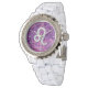 Une perle comme le signe zodiaque Leo sur arrière - plan fuchsia violet camouflage numérique. Un design urbain moderne de style girly pour une grande idée cadeau de montre d'anniversaire sur mesure pour elle. Utilisez le lien "Demandez à ce concepteur" pour nous contacter pour vos demandes spéciales de design ou pour obtenir de l'aide pour votre projet de personnalisation.