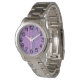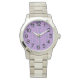 Cette montre pour femmes a un design art déco qui ressemble à celui d'une carte de circuit imprimé. Les lignes sont disposées verticalement en sarcelle sur un fond violet. Vous souhaitez une couleur différente ? Envoyez-moi un message.