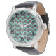 Cette montre pour hommes a un design moderne du milieu du siècle composé de cinq lignes noires et de deux rectangles turquoise répétés à travers le design.