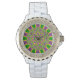 Montre Mardi Gras Vert Jaune violet Motif Mandala