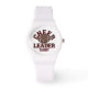 Superbe montre de pom-pom-pom girl sportive avec texte graphique marron lisant Cheer Leader autour d'un football marron, au milieu. Personnalisez le texte du marron en bas avec le nom de votre pom-pom girl préféré. Ça fait une idée de cadeau.