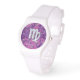 Une mère de perle comme Virgo Zodiac Sign on Camouflage numérique en violet rose et arrière - plan fuchsia. Un design urbain moderne de style girly pour une grande idée cadeau de montre de mode personnalisée. Les motifs de broderie sont disponibles dans une sélection d'options de couleurs populaires. Utilisez le lien "Demandez à ce concepteur" pour nous contacter avec vos demandes de design spécial ou pour obtenir de l'aide sur vos besoins de personnalisation.