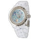 Montre eWatch en pierre blanche de rhinone avec une image de belles pierres précieuses, coquillages, et une sirène dorée sur bleu clair. Voir l'ensemble de la collection Gemstones & Medallions Watch dans la section ACCESSORIES.