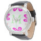 Montre monogramme de fleur rose ajouter nom lettre feuill