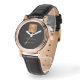 Elégante montre de luxe en cuir noir look pour femmes avec une parties scintillant en or monogrammed carré et signature de nom personnalisée.