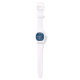 Montre avec design d'échecs avec des pièces d'échecs foncées et légères en rangs sur un arrière - plan bleu.