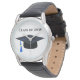 Montre masculine pour l'étudiant diplômé. Tableau de mortier noir avec le goût bleu et l'année de graduation.