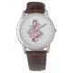 Pink treble clef with delicate, detailed pink Japanese cherry blossoms against white background painted over with light blue paint Blooming pink sakura.