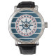 Design nautique avec décoration de voilier en forme ronde sur bleu et blanc rayé arrière - plan