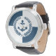 Nautical themed design with anchor and laurel wreath decoration over blue and white geometric background