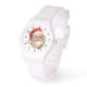 Une montre avec une joyeuse illustration d'un Père Noël de style vintage aux joues rouges roses. portant son chapeau de Père Noël rouge classique et son grand ours blanc. Un spring de saint ajoute à l'esprit festif de fête de ce design.