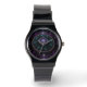 C'est un motif de sphère magique noir, violet, lilas et turquoise.