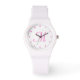 Cette montre femme moderne et élégante allie style et confort sans effort. Le cadran blanc minimaliste présente des chiffres simples et un monogramme initial raffiné en rose, créant un look chic et sophistiqué. Associé à une bracelet en silicone blanc souple et confortable, ce garde-temps est parfait pour toutes les occasions, des sorties décontractées aux événements spéciaux. Ajoutez une touche de charme et de raffinement à votre garde-robe avec cette montre polyvalente et élégante.