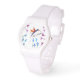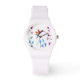 Une montre de colibri idéale pour les amateurs d'oiseaux avec un colibri entouré de fleurs flottant sans temps, comme le dit la légende. Ce magnifique art ornithologique floral est tiré de ma peinture en verre et la couleur arrière - plan peut être changée pour convenir. Copyright Annabel Potter