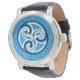 Montre Ornement de Triskele celtique, bleu ciel et blanc