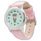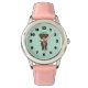 Montre d'enfant avec une simple illustration d'un ours brun tenant une marguerite jaune. Bonjour écrit sur sa tête.