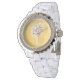 Montre De Palmier Jaune. Cette collection présente de jolis objets mignons et preppy, représentant une peinture jaune canari colorée représentant un joli palmier tropical. Design tropical chic, girly et preppy. Voir aussi Empreintes de palmiers, cartes de palmiers, enveloppement cadeau de palmiers, cadeaux de palmiers.