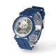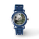 Le visage de cette mignonne montre de panda est ma photo originale prise à Chengdu, en Chine. C'est un adorable panda géant mangeant du bambou. Quel grand cadeau de Noël ou d'anniversaire pour un enfant qui aime les pandas ! Il peut être personnalisé avec le nom de l'enfant, ou un exemple de texte peut être supprimé. Silicone Strap est bleu, mais est disponible en d'autres couleurs. Tous droits réservés © 2023 Marcia Socolik.
