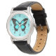 Papillon - bleu turquoise et noir - numériquement photo améliorée contre un arrière - plan à gradient turquoise / turquoise